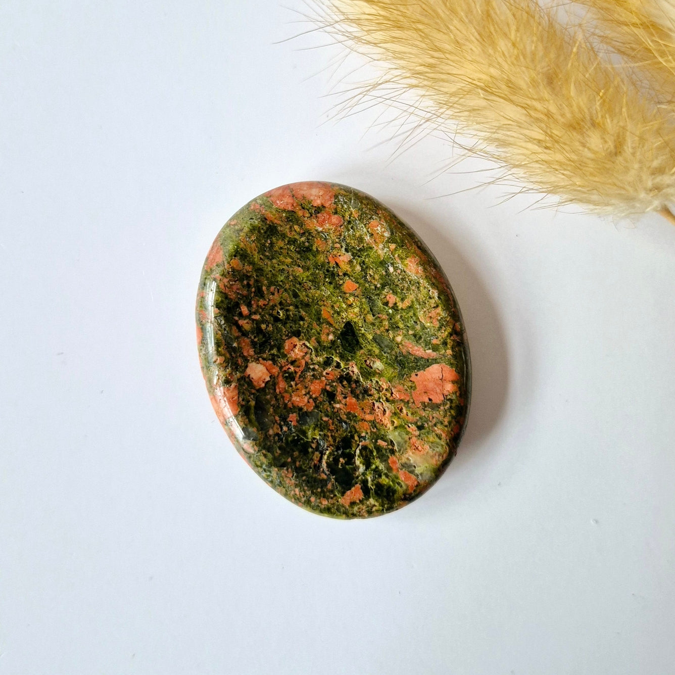 Vind evenwicht tussen hart en hoofd met deze prachtig gepolijste Unakiet duimsteen. Unakiet is een aardende steen die helpt bij emotionele heling, zelfzorg en innerlijke groei, en wordt vaak gebruikt om stress los te laten en rust te herstellen.